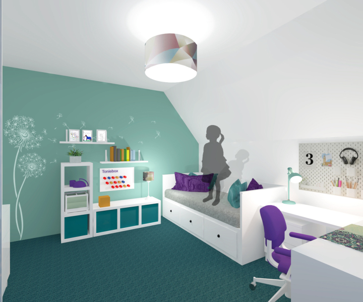 Mit den Farb- und Materialideen der Mama und dem geschulten Innenarchitektenauge wird aus der Planung am Rechner eine liebevolle Umsetzung des Kinderzimmers. Die Kombination aus Pastelltönen sowie niedlichen Dekorationen lässt einen schönen Ort zum Großwerden entstehen, der zum jetzigen Zeitpunkt ausreichend Platz für weitere Spielideen bietet.